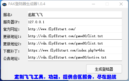 直接生成【pak】端登陆器 支持自定义更新地址 服名 服务器IP及公告